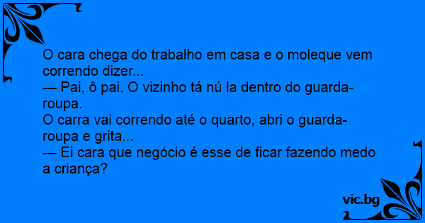 — Pai, ô pai. O vizinho tá nú la dentro do guarda-roupa.