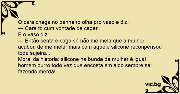 — Então senta e caga só não me mela que a mulher acabou de me melar mais com aquele silicone reconpensou toda sujeira...