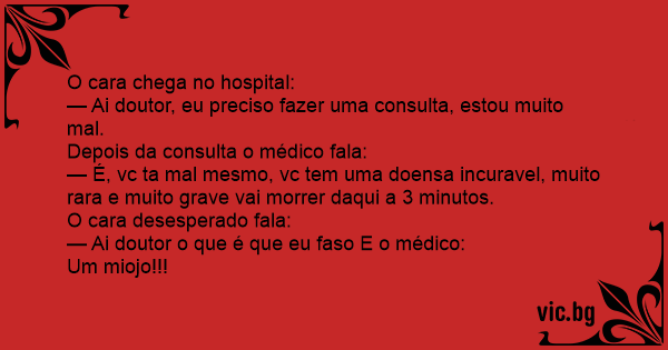 — É, vc ta mal mesmo, vc tem uma doensa incuravel, muito rara e muito grave vai morrer daqui a 3 minutos.