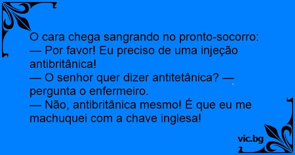 — Por favor! Eu preciso de uma injeção antibritânica!