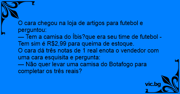 — Tem a camisa do Íbis?que era seu time de futebol -Tem sim é R$2,99 para queima de estoque.