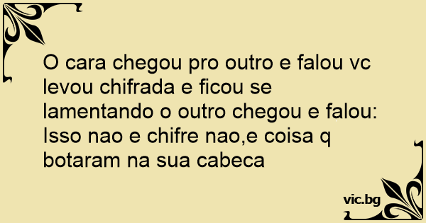 O cara chegou pro outro e falou vc levou chifrada e ficou se lamentando o outro chegou e falou: