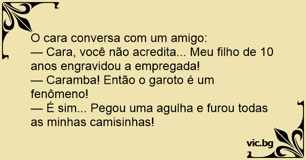 — Cara, você não acredita... Meu filho de 10 anos engravidou a empregada!