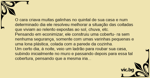 O ladrão, já рuто da vida, cheio de cocô de gаlinhа gritou lá de fora: