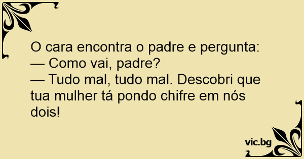 — Tudo mal, tudo mal. Descobri que tua mulher tá pondo chifre em nós dois!