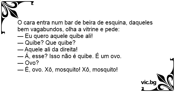 O cara entra num bar de beira de esquina, daqueles bem vagabundos, olha a vitrine e pede: