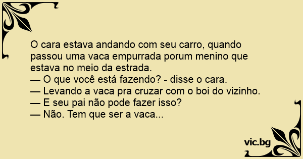 O cara estava andando com seu carro, quando passou uma vаса empurrada porum menino que estava no meio da estrada.