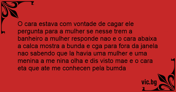 O cara estava com vontade de саgаr ele pergunta para a mulher se nesse trem a banheiro a mulher responde nao e o cara abaixa a calca mostra a bunda e cga para fora da janela nao sabendo que la havia uma mulher e uma menina a me nina olha e dis visto mae e o cara eta que ate me conhecen pela bumda