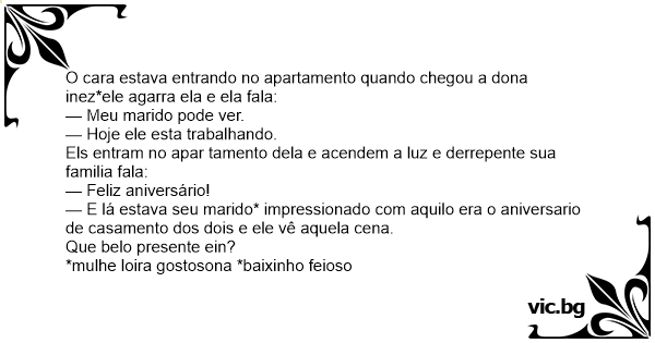 — E lá estava seu marido* impressionado com aquilo era o aniversario de casamento dos dois e ele vê aquela cena.