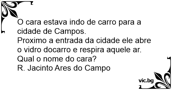 Proximo a entrada da cidade ele abre o vidro docarro e respira aquele ar.