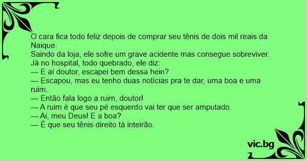 — Então fala logo a ruim, doutor!