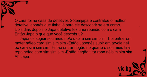 Dois dias depois o Japa detetive fez uma reunião com o cara -Então Japa o que que você descobriu?