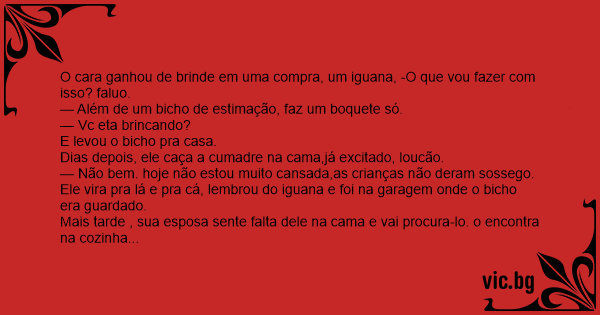 O cara ganhou de brinde em uma compra, um iguana, -O que vou fazer com isso? faluo.