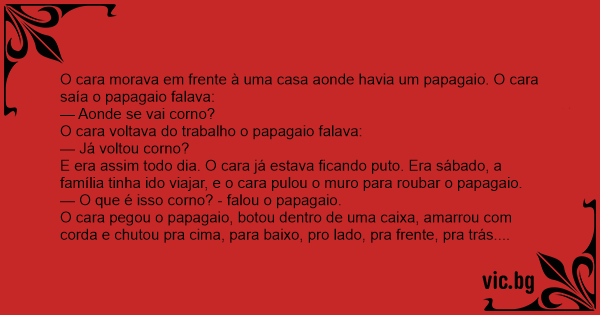 O cara morava em frente à uma casa aonde havia um papagaio. O cara saía o papagaio falava: