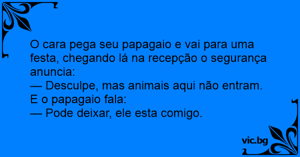 O cara pega seu papagaio e vai para uma festa, chegando lá na recepção o segurança anuncia: