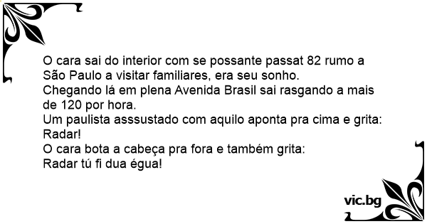 O cara sai do interior com se possante passat 82 rumo a São Paulo a visitar familiares, era seu sonho.