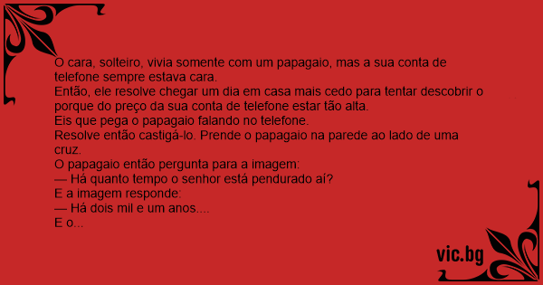 O cara, solteiro, vivia somente com um papagaio, mas a sua conta de telefone sempre estava cara.