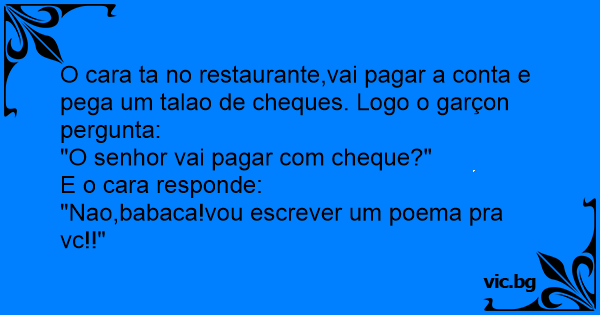 O cara ta no restaurante,vai pagar a conta e pega um talao de cheques. Logo o garçon pergunta: