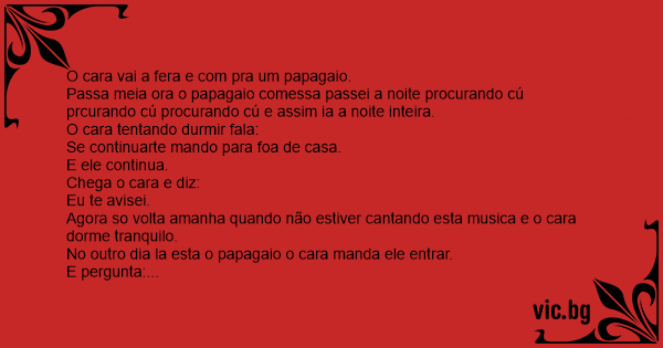Passa meia ora o papagaio comessa passei a noite procurando cú prcurando cú procurando cú e assim ia a noite inteira.