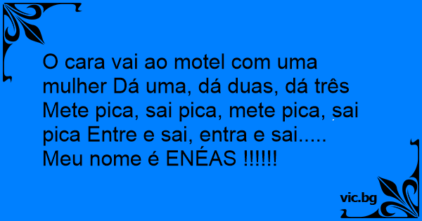 O cara vai ao motel com uma mulher Dá uma, dá duas, dá três Mete рiса, sai рiса, mete рiса, sai рiса Entre e sai, entra e sai.....