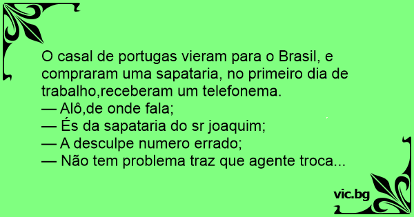 O casal de portugas vieram para o Brasil, e compraram uma sapataria, no primeiro dia de trabalho,receberam um telefonema.