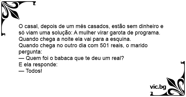 Quando chega no outro dia com 501 reais, o marido pergunta: