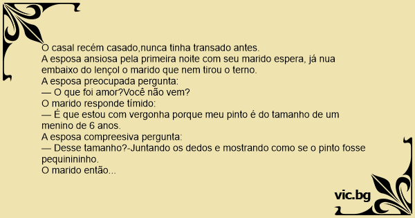 — Desse tamanho?-Juntando os dedos e mostrando como se o pinto fosse pequinininho.