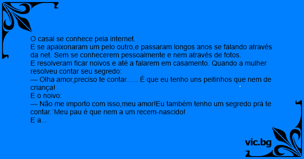 E resolveram ficar noivos e até a falarem em casamento. Quando a mulher resolveu contar seu segredo: