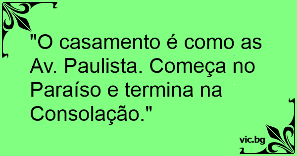 "O casamento é como as Av. Paulista. Começa no Paraíso e termina na Consolação."