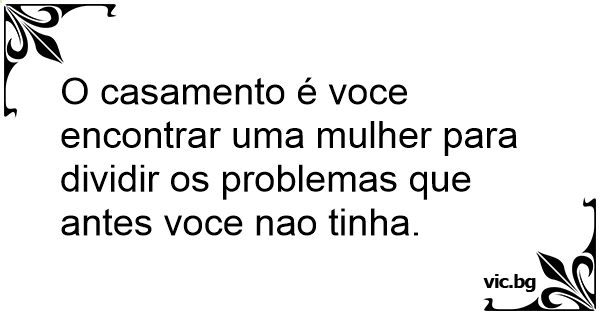 O casamento é voce encontrar uma mulher para dividir os problemas que antes voce nao tinha.
