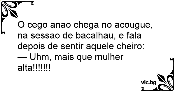 O cego anao chega no acougue, na sessao de bacalhau, e fala depois de sentir aquele cheiro: