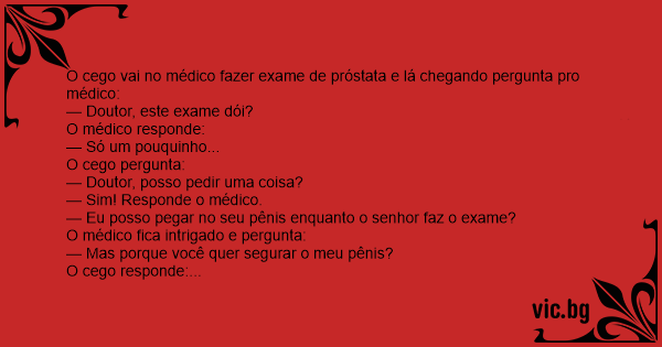 O cego vai no médico fazer exame de próstata e lá chegando pergunta pro médico: