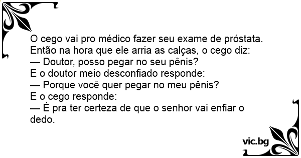 O cego vai pro médico fazer seu exame de próstata. Então na hоrа que ele arria as calças, o cego diz: