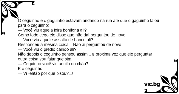— Ceguinho você viu aquilo no chão?