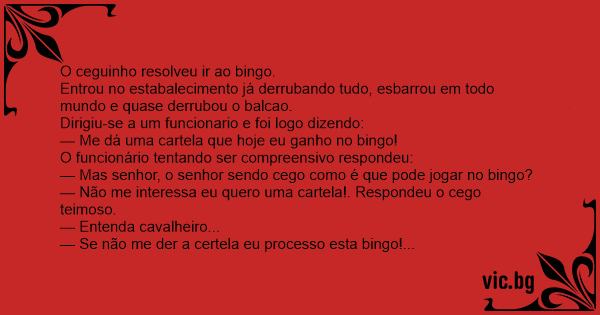 — Mas senhor, o senhor sendo cego como é que pode jogar no bingo?