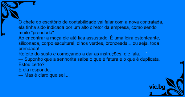 — Mas é claro que sei. Fatura é o que acontece quando a gente quebra uma perna e duplicata é quando quebra as duas!