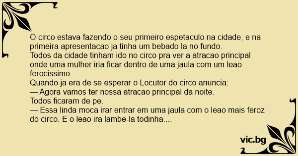 Quando a apresentacao do leao acaba o Locutor do circo vira para o publico e pergunta: