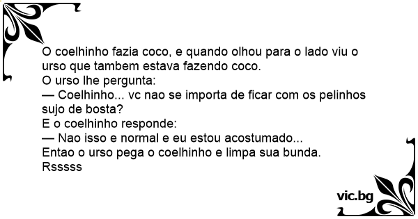 — Coelhinho... vc nao se importa de ficar com os pelinhos sujo de bosta?