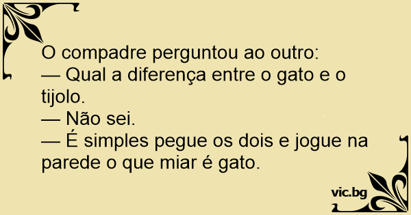— Qual a diferença entre o gato e o tijolo.