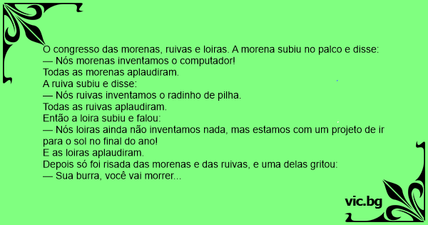 O congresso das morenas, ruivas e loiras. A morena subiu no palco e disse: