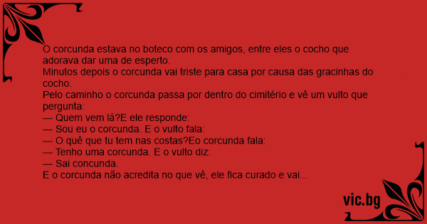 O corcunda estava no boteco com os amigos, entre eles o cocho que adorava dar uma de esperto.