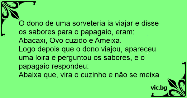 O dono de uma sorveteria ia viajar e disse os sabores para o papagaio, eram: