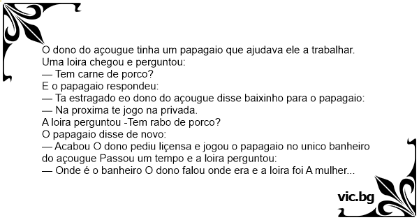 — Ta estragado eo dono do açougue disse baixinho para o papagaio: