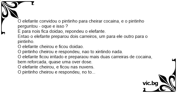O elefante convidou o pintinho para cheirar cocaina, e o pintinho perguntou - oque e isso ?