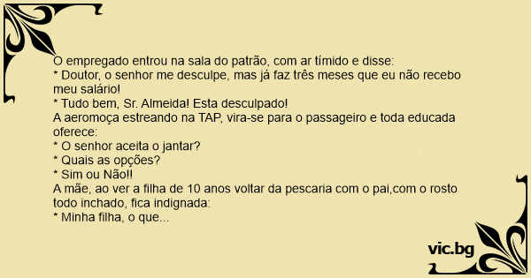 O empregado entrou na sala do patrão, com ar tímido e disse: