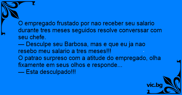 O empregado frustado por nao receber seu salario durante tres meses seguidos resolve converssar com seu chefe.