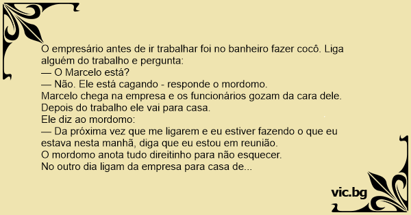 O empresário antes de ir trabalhar foi no banheiro fazer cocô. Liga alguém do trabalho e pergunta: