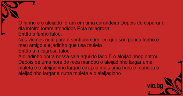 O fanho e o aleijado foram em uma curandeira Depois de esperar o dia inteiro foram atendidos Pela milagrosa.