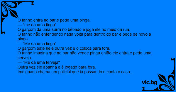 O fanho não entendendo nada volta para dentro do bar e pede de novo a pinga.