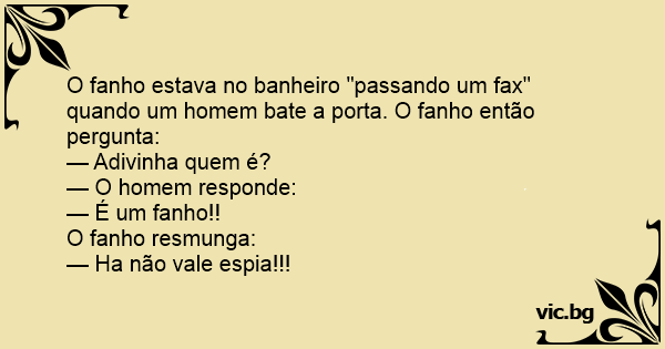 O fanho estava no banheiro "passando um fax" quando um homem bate a porta. O fanho então pergunta: